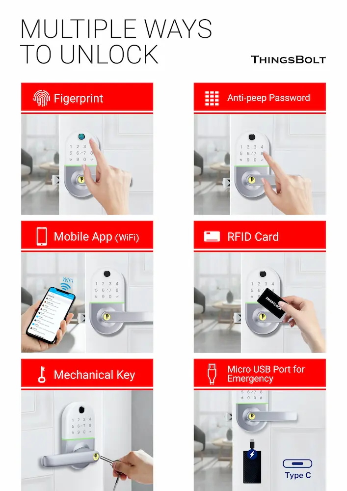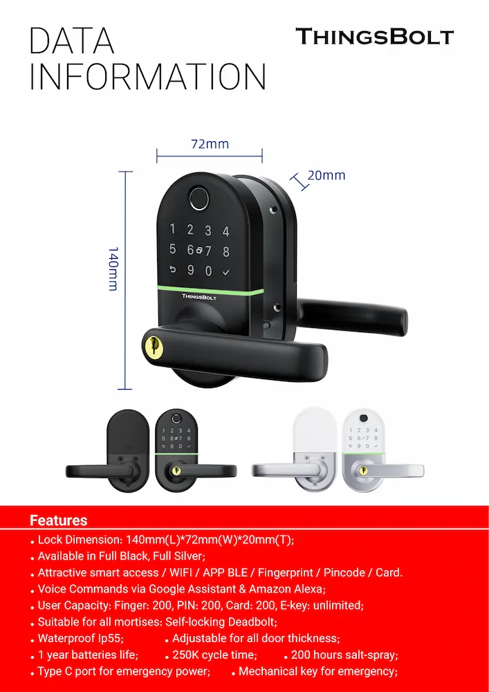 • Satisfaction Service: ThingsBolt smart lock provides reliable security and style. With a 30-day money-back, 1-year product coverage, and lifetime after-sales support, you can trust your investment is protected. Get the ultimate security solution for your home today!