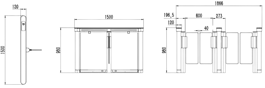 - Dimensions: 1500mm (L) × 120mm (W) × 980mm (H)